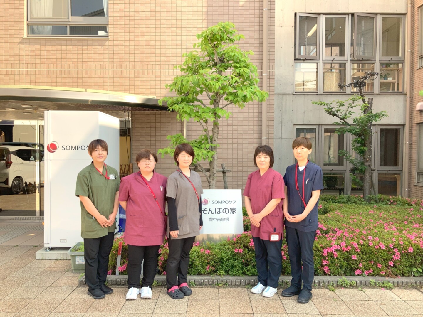 豊中市の穏やかな住宅街に位置し、落ち着いた環境の中で安心の暮らしを提供しています。玄関先では、春にはつつじの花が鮮やかに咲き誇り、訪れる方々を温かく迎えます。スタッフもその花々に負けない笑顔でご入居者様の日々を支えています。この土地の穏やかさと、人の温もりが調和する場所で安心と笑顔をお届けします。