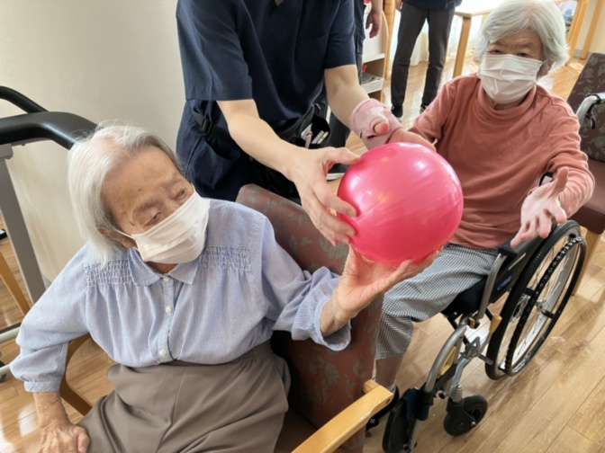 利用者の皆さんも、子どもたちの元気な声に励まされながら、一生懸命に風船をつないでおられました。