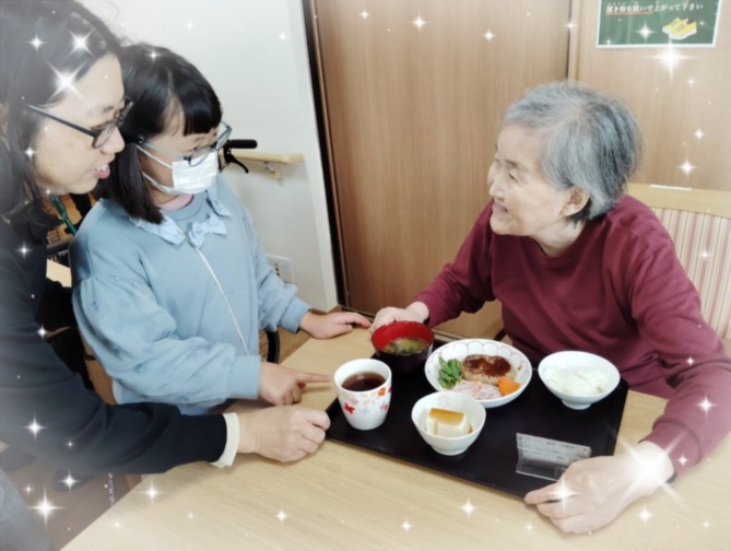 食事はケアスタッフが調理致します。身近にいるケアスタッフが調理を行うことで、お口の中に問題があるご入居者様でも、その方の一番食べやすい柔らかさや形のお食事をご提供することができます。基本的にお一人お一人のお食事のお食事形態は決まってはいますが、日々の体調にも考慮してご提供することが可能です。