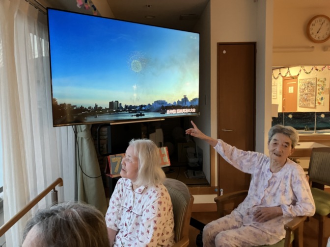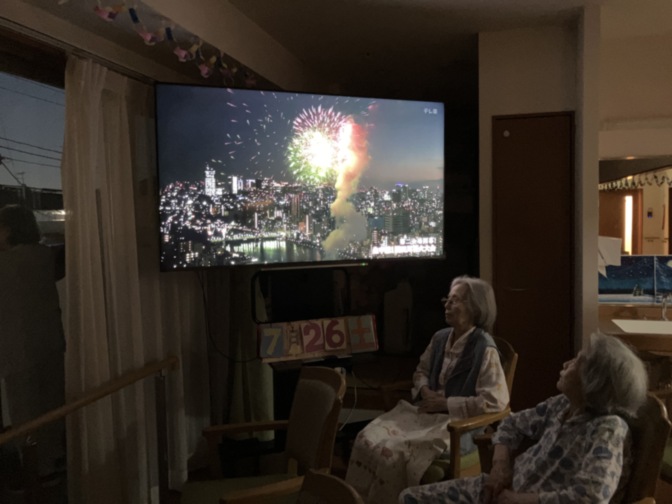 テレビでは隅田川花火大会の中継も放送されており、どちらも楽しまれていました