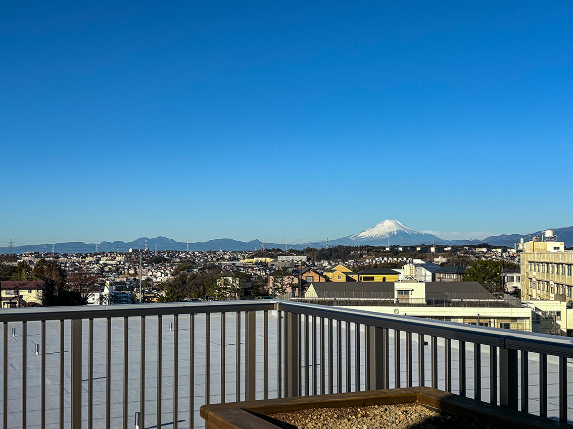 屋上には開放感あふれる見晴らしの良いウッドデッキテラスがあり、