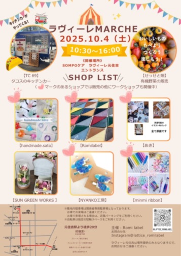 SOMPOケア ラヴィーレ元住吉の地域交流スペースにおいてマルシェを開催します♫