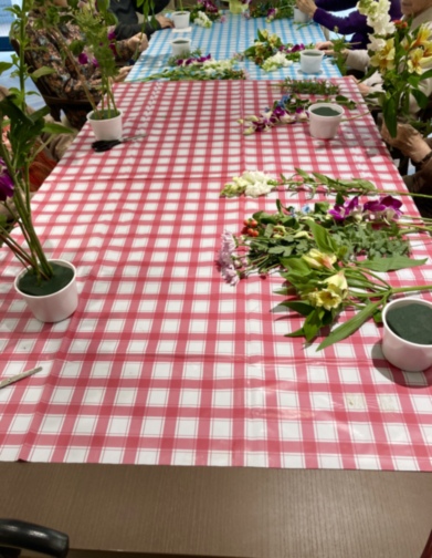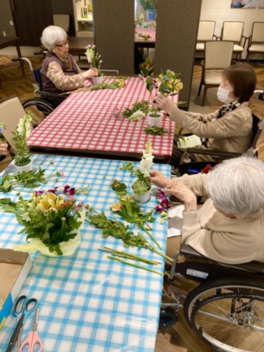 今月のフラワーアレンジメントの様子です。