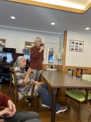 ホームでは月に2回ほどカラオケレクリエーションを行っており、