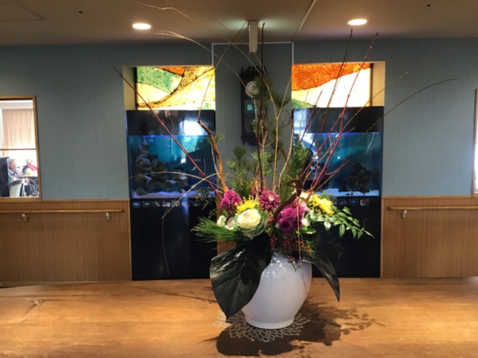 ご入居者様が書かれた力強い書とともに、華やかな新年を迎えることができました。