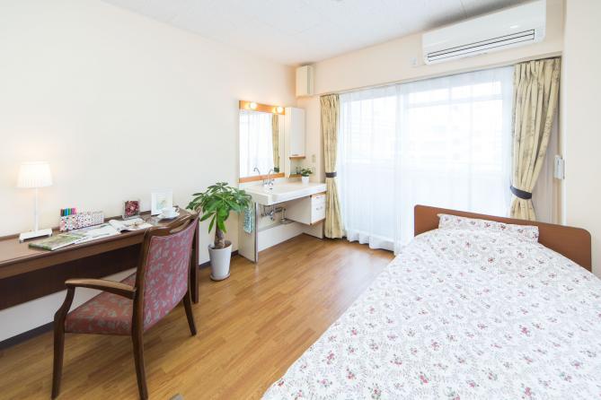 全室個室なのでご面会は24時間いつでもお気軽にお越しいただけます。居室にトイレや洗面台もあり、ご自宅と同様のプライベート空間を確保。また、緊急通報装置が各所に設置されており安心です。