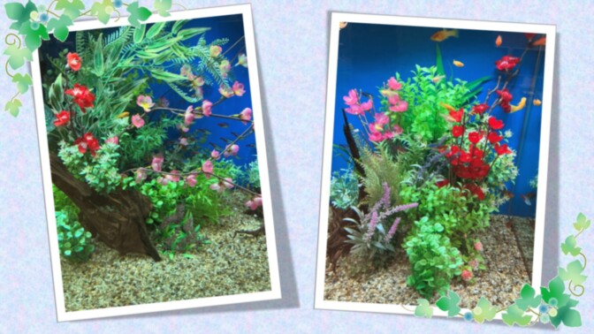 新しい年になり水槽もお正月用の飾りつけに変わりました。