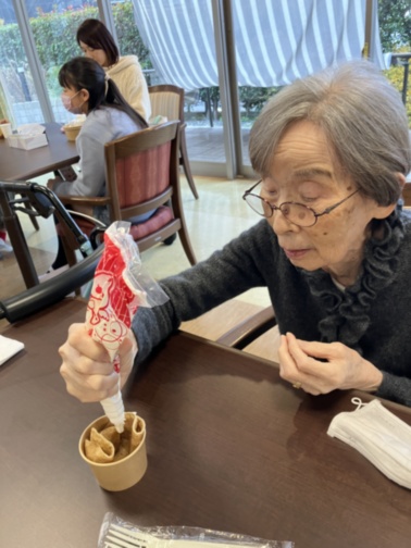 ご入居者様も一緒にご参加くださり美味しいクレープを作りました。