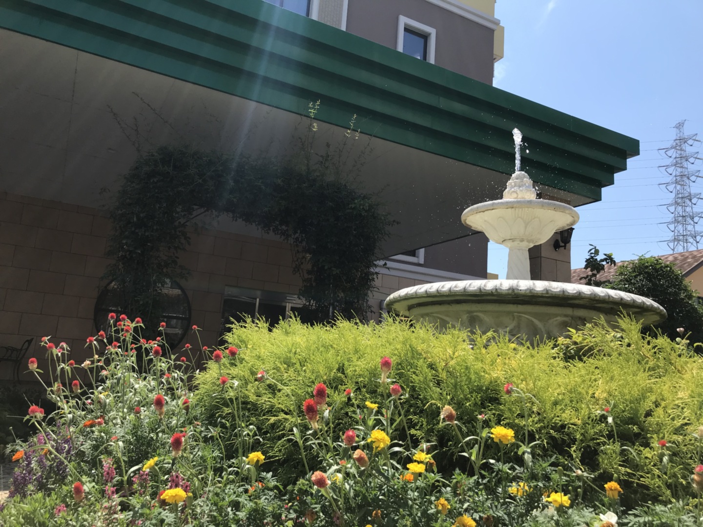 ご入居者さまも散歩がてらの観賞や、日課としてお花の成長を楽しんだり、一緒にお花の手入れをされてたりしています。ご家族さまとの面会スペースに使用していただくこともあり、天気の良い日はとても気持ちが良いと評判です。