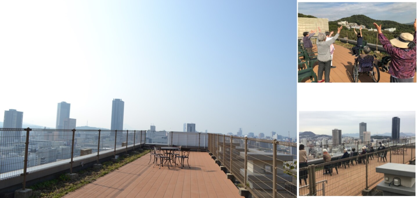 屋上で定期的に外気浴をしたり、涼しい時にはお茶会を開催して優雅なひと時をお過ごしいただけます。