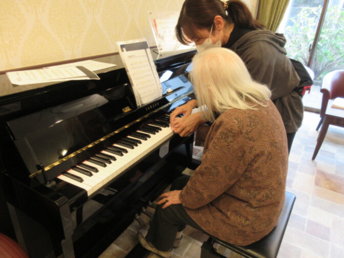 ホームのスタッフによる体操や習字等のほか、外部よりボランティアを招いてのレクリエーションやオンラインレクリエーションも豊富です。
