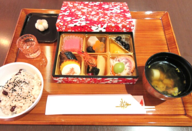 元日という事で、おせち料理とお屠蘇を提供させていただきました。
