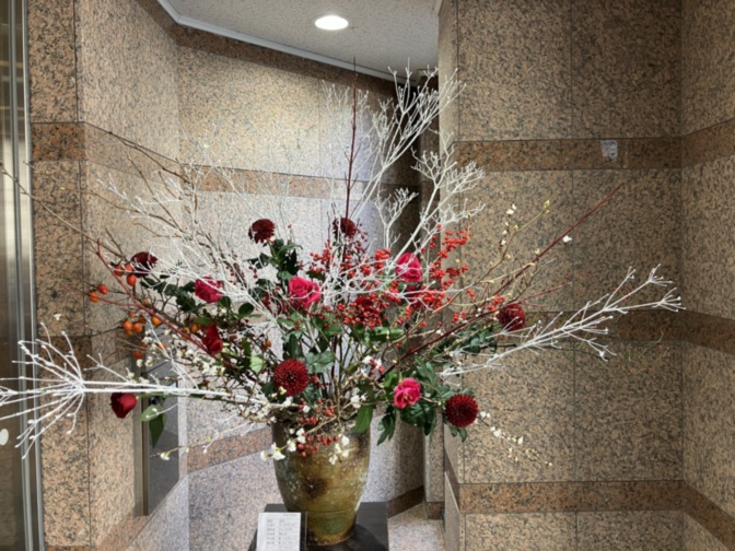 玄関前の生花もクリスマスバージョン Ψ・ω・Ψ