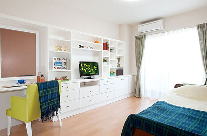 全室個室なのでご面会は24時間いつでもお気軽にお越しいただけます。居室にトイレや洗面台もあり、ご自宅と同様のプライベート空間を確保。また、緊急通報装置が各所に設置されており安心です。