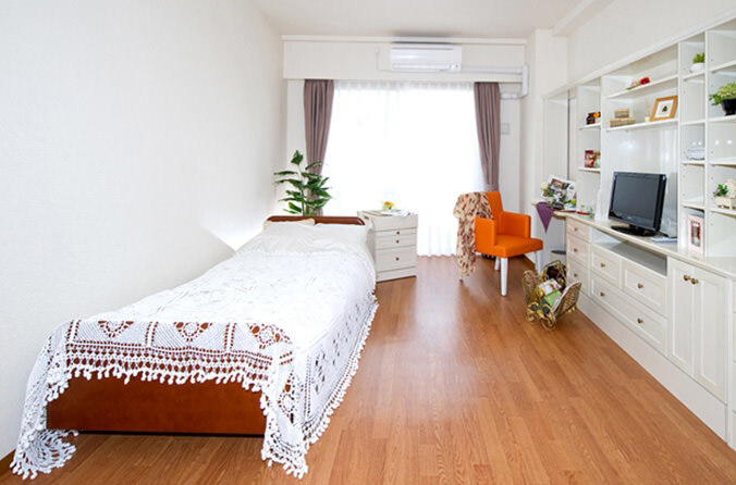 全室個室なのでご面会は24時間いつでもお気軽にお越しいただけます。居室にトイレや洗面台もあり、ご自宅と同様のプライベート空間を確保。また、緊急通報装置が各所に設置されており安心です。
