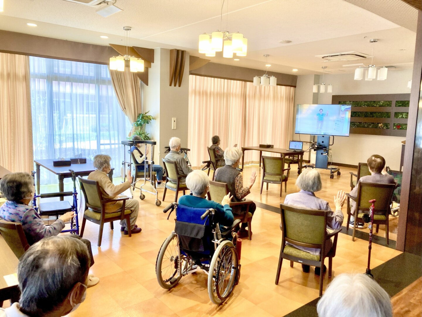 毎日開催しているアクティビティの風景。音楽、体操などさまざまなコンテンツを準備しています。