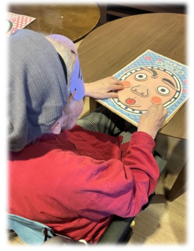 今年も、日本の伝統的な遊び「福笑い」を楽しんでいただきました。
