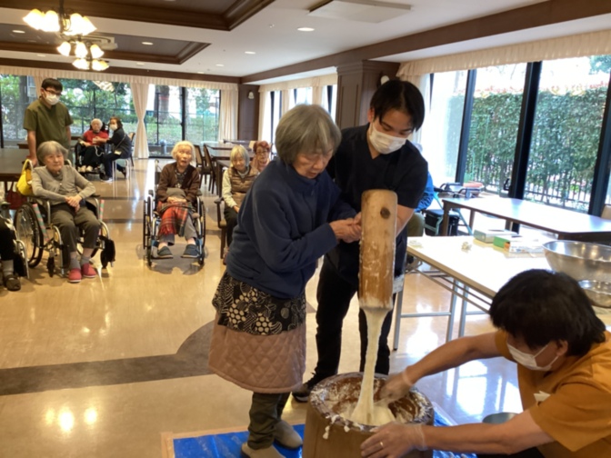 子供達と入居者様とで餅つきを行います!