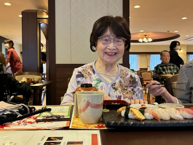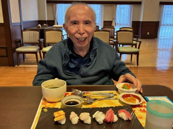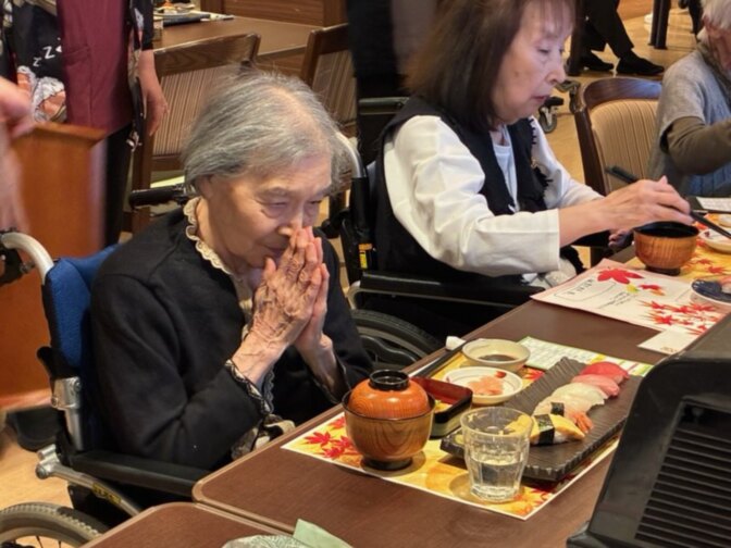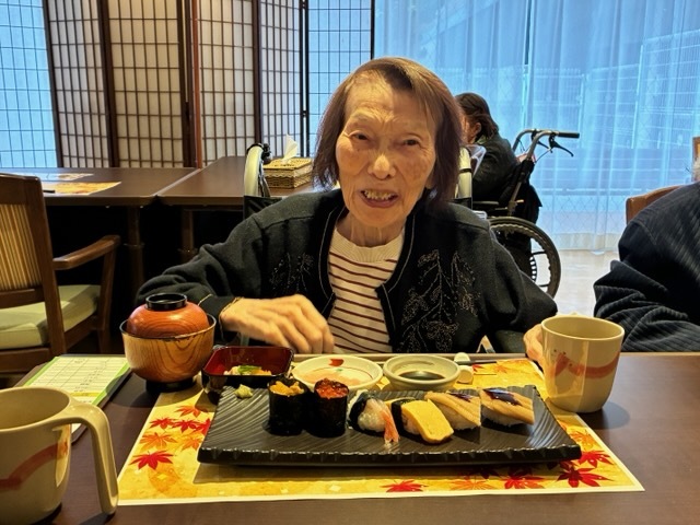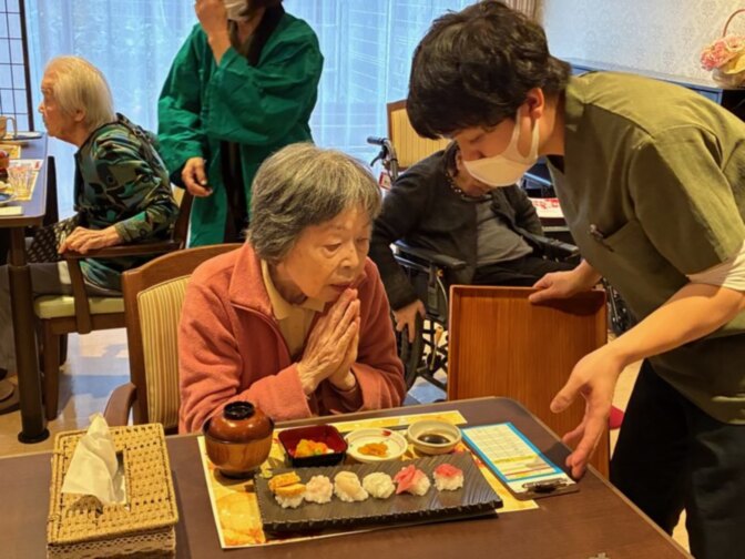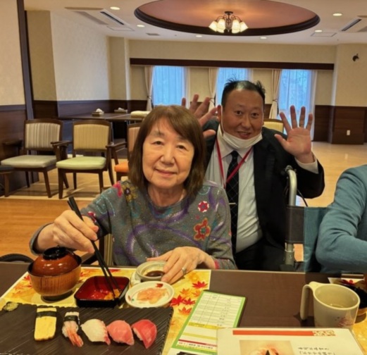 「お寿司いかがですか?」「お寿司食べられて嬉しいです!」
