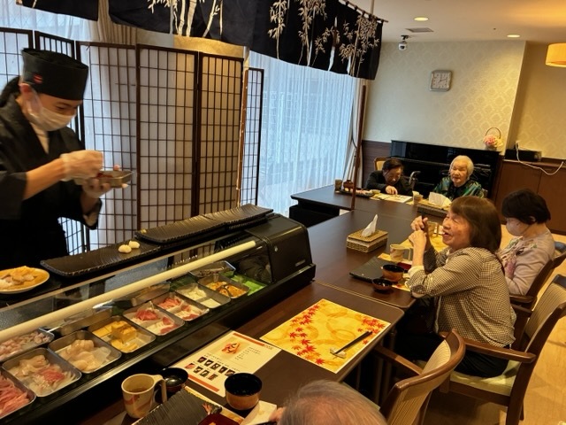 カウンター席でご入居者さまと板前さん、お話が弾んでいらっしゃいました!