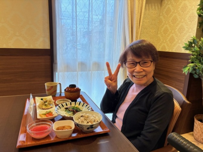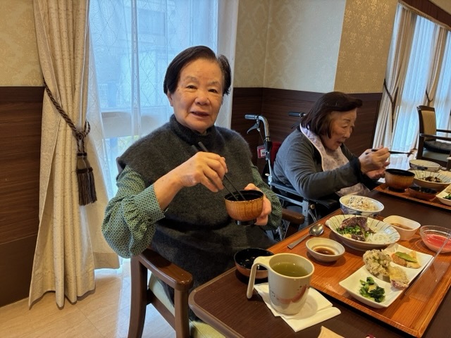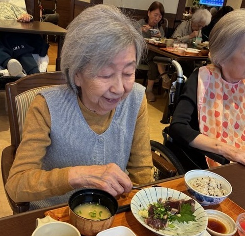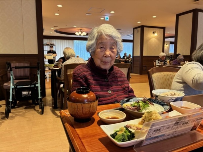 「お食事いかがですか?」「おいしくいただいています!今日はごちそうですね!!」