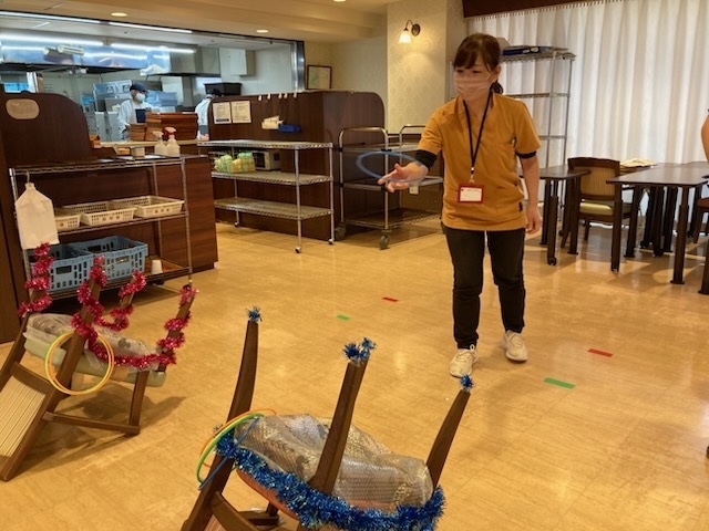 輪投げ担当のスタッフが輪投げに挑戦!!