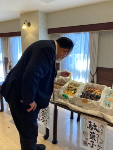「駄菓子は何があるのかな~?」ホーム長、一生懸命お菓子を見ていました!!