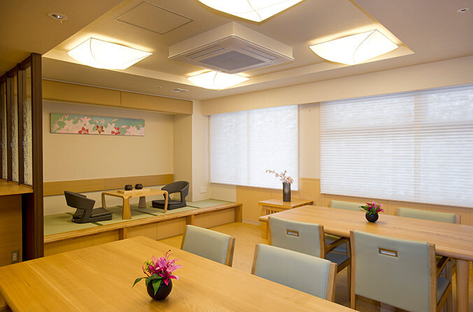 全室個室なのでご面会は24時間いつでもお気軽にお越しいただけます。居室にトイレや洗面台もあり、ご自宅と同様のプライベート空間を確保。また、緊急通報装置が各所に設置されており安心です。