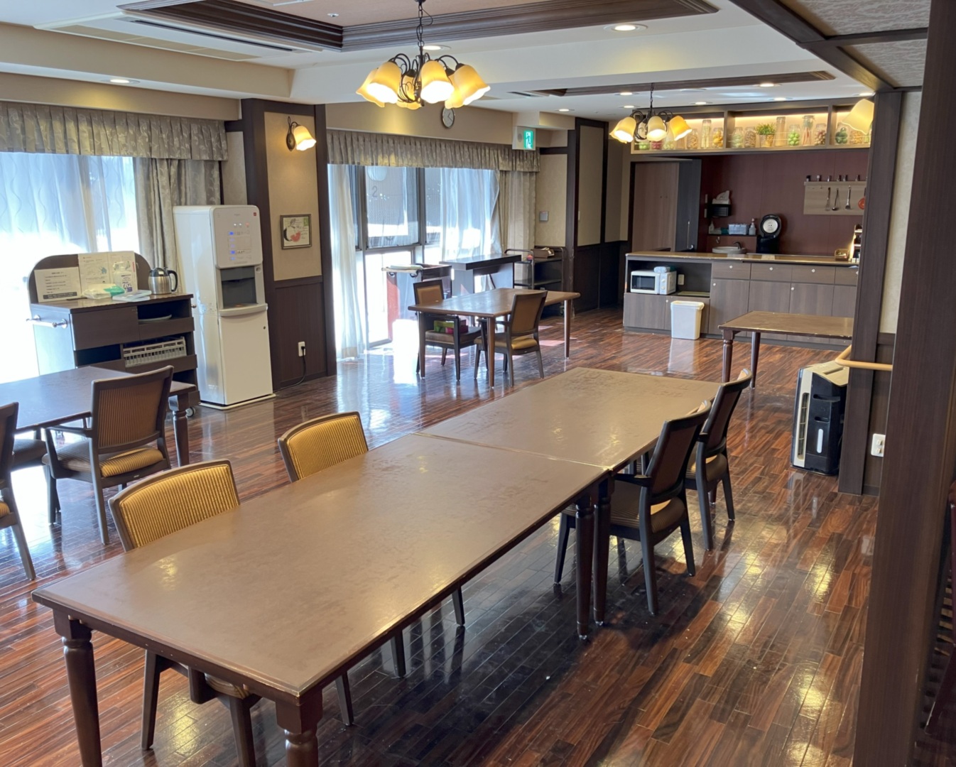 | 共用施設・設備 | エントランスロビー、ダイニング(食堂) 兼 機能訓練コーナー、カフェ、浴室(個浴・特殊浴)、理美容室、健康管理室、相談室、洗濯室、トイレ、浴室・トイレに呼び出しボタン、モニターカメラ、エレベーター内に非常電話・遠隔監視装置 他 |