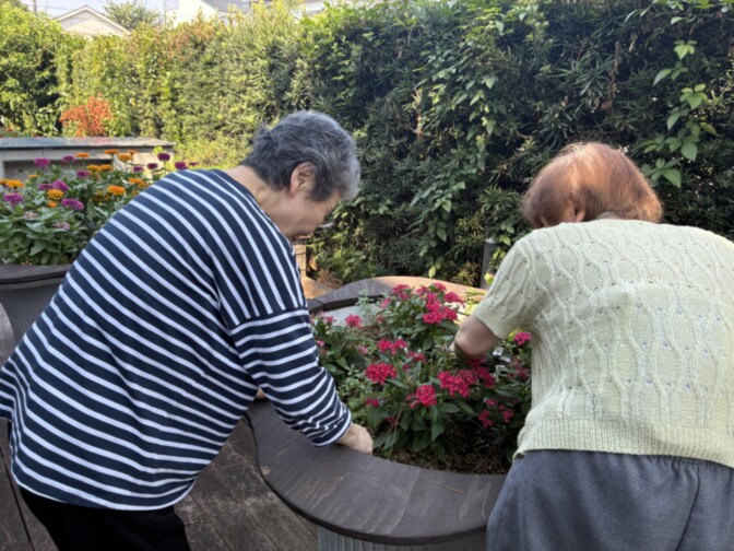 ホームの外をお散歩というわけにもいかないので、ちょっと中庭に出て気分転換(^^♪