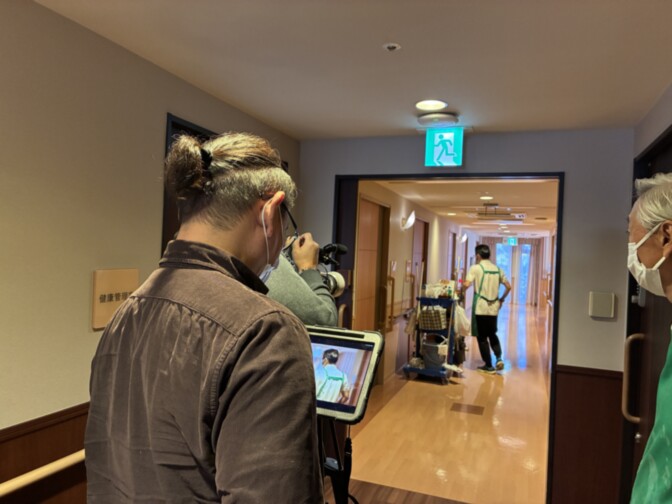 本日、ホームで働く若年性認知症のクリーンスタッフが西東京市の取材を受けました。