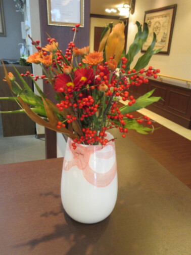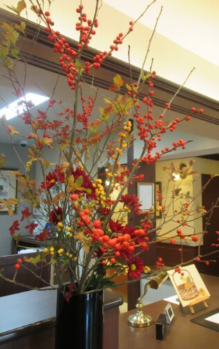 今週のラヴィーレ横須賀のエントランスには、紅葉した木々が飾られています。