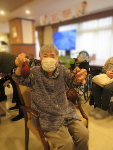 掘ったお芋を手にご入居者様も大喜びです。