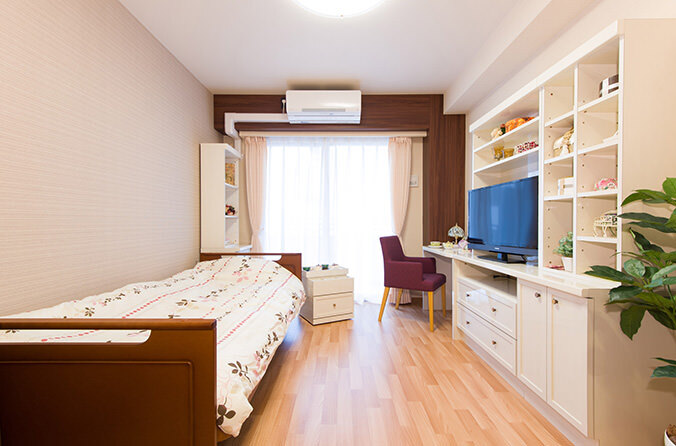 全室個室なのでご面会は24時間いつでもお気軽にお越しいただけます。居室にトイレや洗面台もあり、ご自宅と同様のプライベート空間を確保。また、緊急通報装置が各所に設置されており安心です。