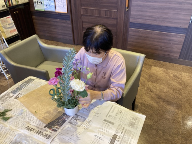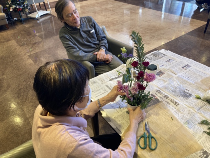 出来上がったお花はお部屋や共用部に飾らせて頂いております。