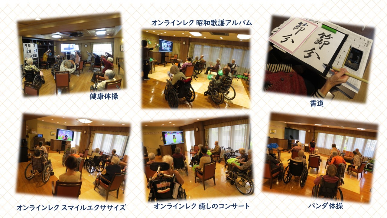 体操・音楽・書道・フラワーアレンジメント・散歩・農園作りなど、コロナ対策を万全にしつつ、日々のレクレーションでさらに元気になっていただけるように毎日行っています。