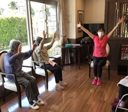 毎週、介護予防インストラクターに来ていただき、介護予防体操を行っています。