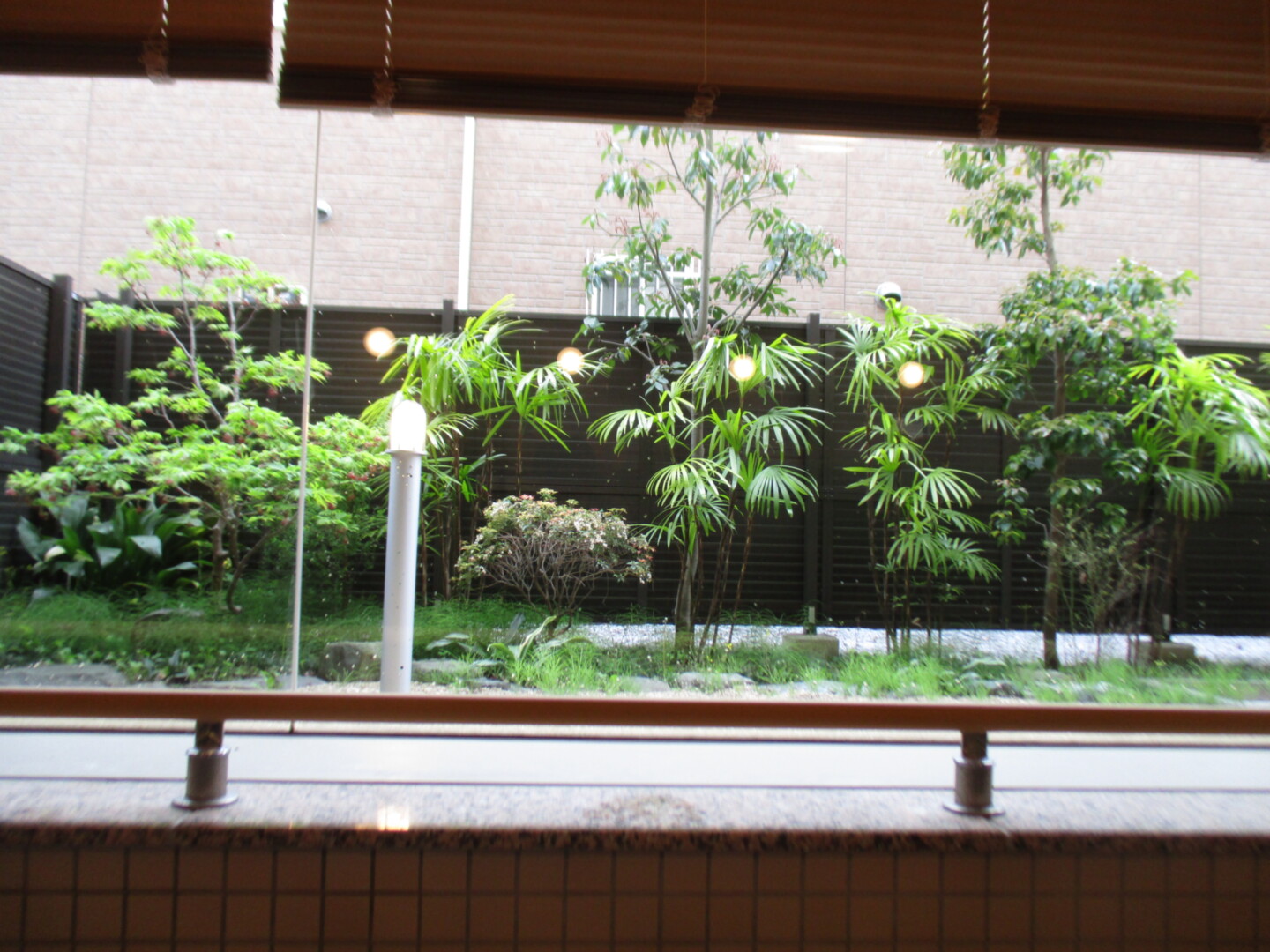 ダイニングの奥にはご入居者様がくつろぐことができる中庭があります。中庭には桜、アジサイ、キンモクセイといった季節感を感じやすい木や、ブルーベリー等の実のなる木々を植えています。また、プランタにはご入居者様とスタッフで育てたお花が植えられています。お散歩、日光浴、ガーデニング等それぞれお好きな過ごし方ができます。