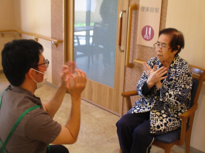 握力では力いっぱい握りしめ測定値を確認されたり、空間認識はスタッフが手で作る形を模倣する内容となっており、それぞれの測定をみなさん真剣に取り組んでくださり無事行う事が出来ました。