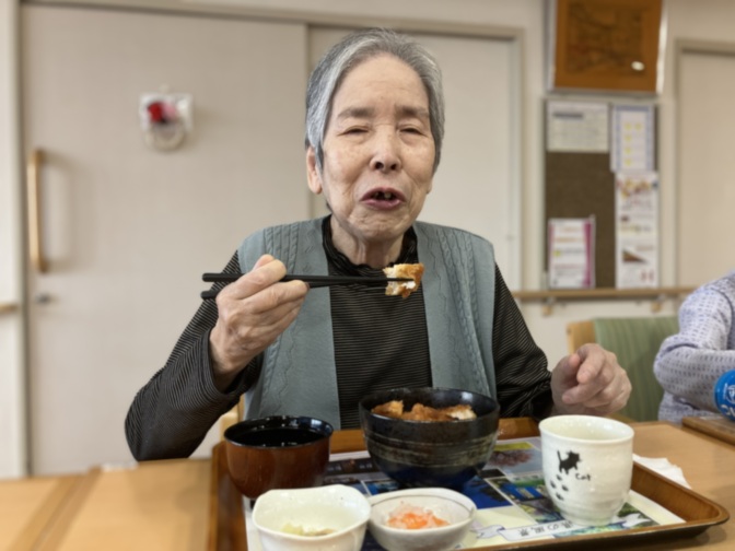 女性の手のひらほどある大きなカツに特別なソースをかけた丼でした。