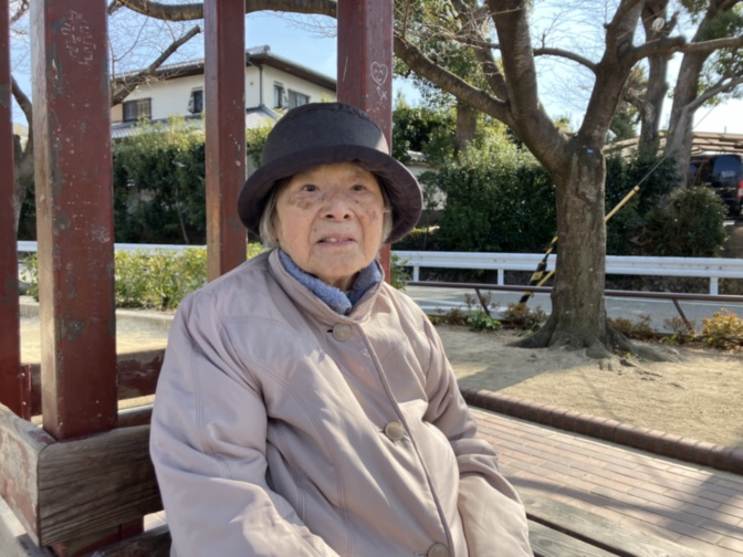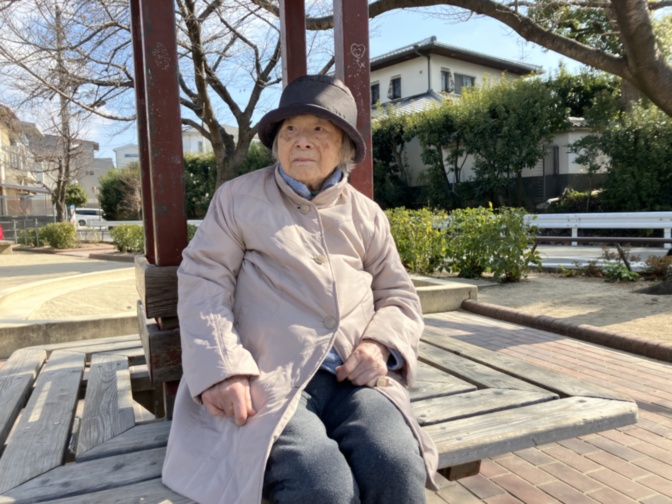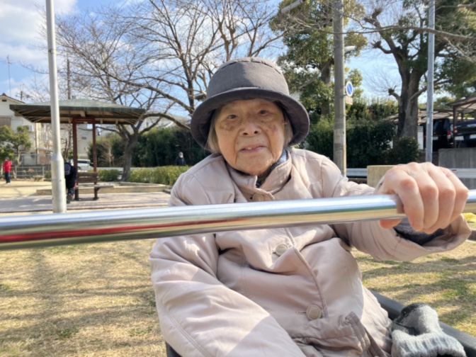 公園で遊んでいるお子様を見て、嬉しそうにされています。