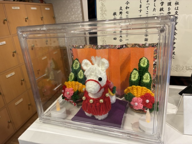 玄関を入るとウエルカムボードには、来年の干支である「午」♪