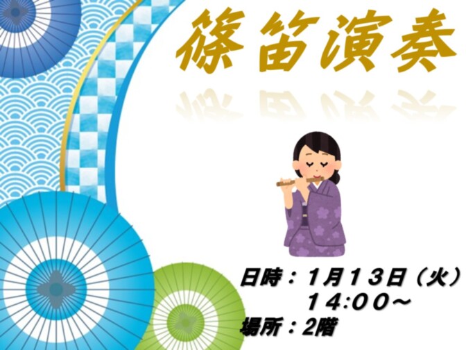 近隣住民の方がボランティアとして「篠笛」を演奏していただけます(*´▽`*)