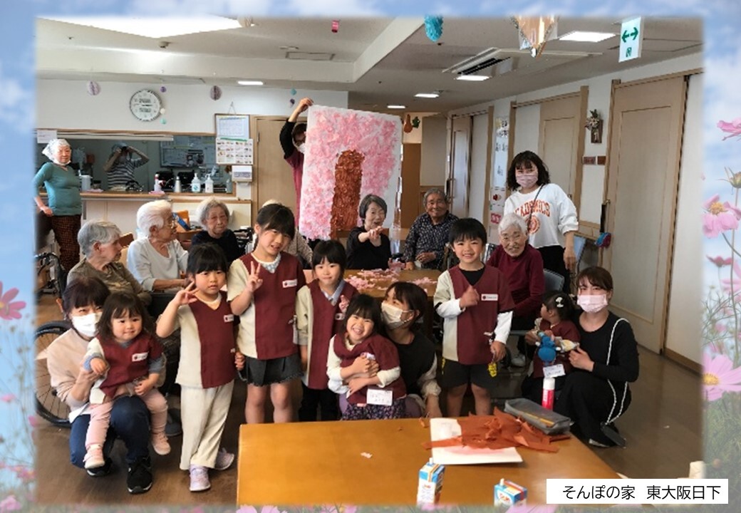 お食事後には、ご入居者さまと子ども達と一緒にさまざまなレクリエーションを開催!