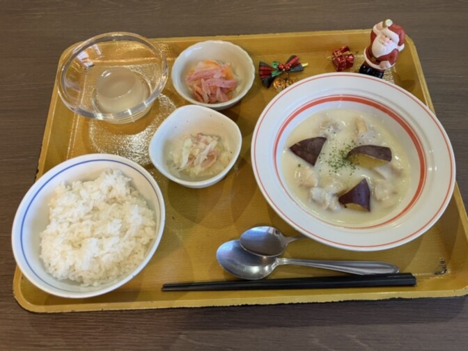 今月の行事食では、ジョージア(旧グルジア)の家庭料理、 “シュクメルリ” をご提供しました。入居者様から 「とてもおいしいね」「珍しくてうれしいわ」 といった声がたくさん聞かれました。にんにくの香りがふわっと広がるクリームソースに、 やわらかい鶏肉がよく絡み、体の中からぽかぽか温まる一品に皆さん興味津々!