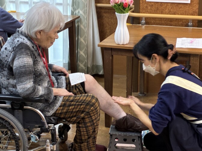 要介護5(寝たきり)の方もお受入れしています。また、ご入居者さまの心身の状態に応じて適切なケアを提供し、「寝かせきり」にはならない介助に努めています。