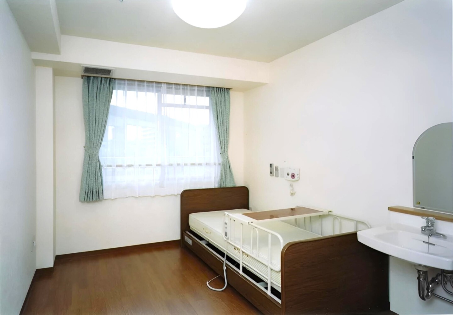 全室個室なのでご面会は24時間いつでもお気軽にお越しいただけます。居室にトイレや洗面台もあり、ご自宅と同様のプライベート空間を確保。また、緊急通報装置が各所に設置されており安心です。