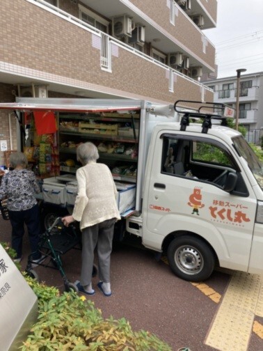 買物を楽しみにされている方がたくさんおられ、移動スーパーで実際に商品を手に取り、品定めをお楽しみいただいております。
