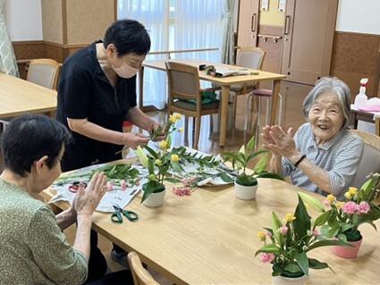 レクリエーション活動が好きなご入居者様が多いので、スタッフによる「フラワーアレンジメント」を定期的に開催しています。