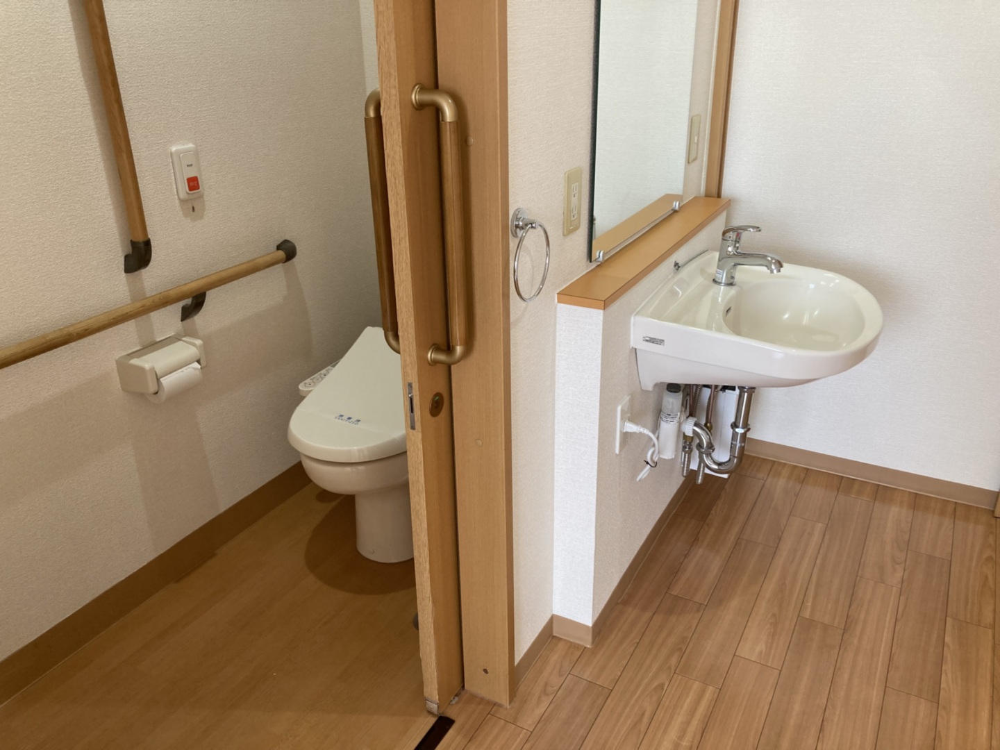 全室個室なのでご面会は24時間いつでもお気軽にお越しいただけます。居室にトイレや洗面台もあり、ご自宅と同様のプライベート空間を確保。また、緊急通報装置が各所に設置されており安心です。